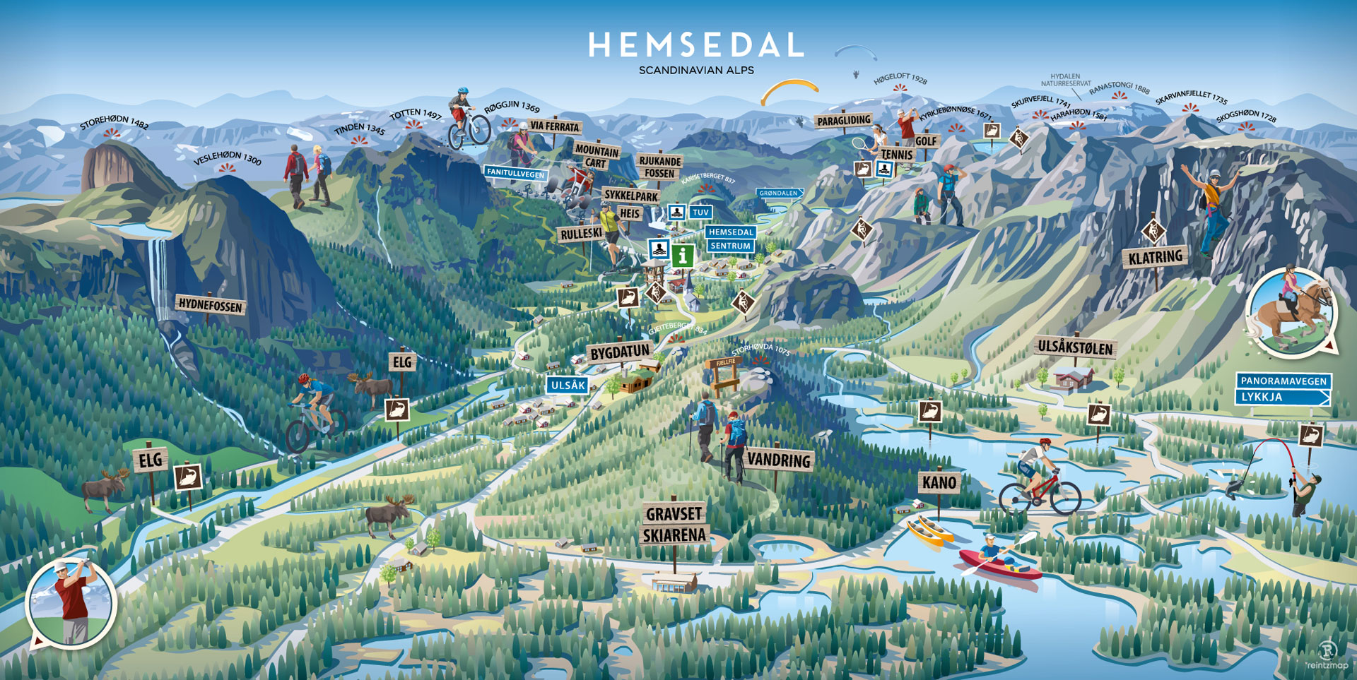 hemsedal sommar karta kartor illustrerade vandring illustrerad piste aktiviteter downhill sparad från skistar grafisk.